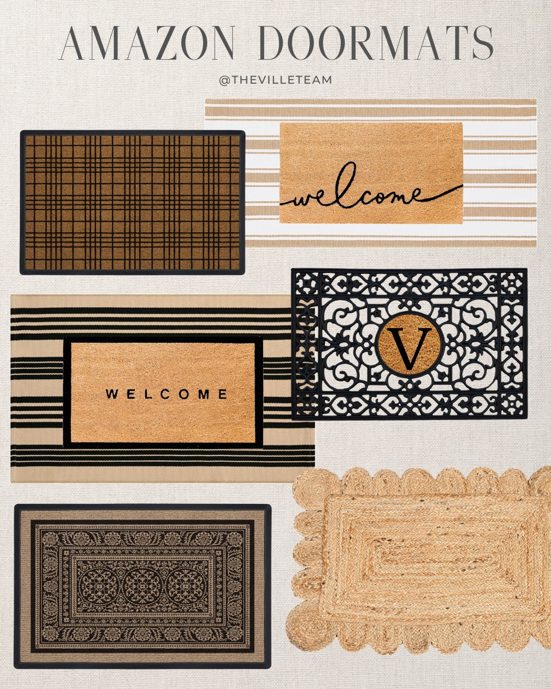 Plaid Door Mat | Tan & White Outdoor Layering Rug | Script Welcome Coir Doormat | Black and Khaki Outdoor Front Porch Layering Rug | Welcome with Black Border Coir Doormat | Rubber Monogram Insert Doormat | Ornate Floral Pattern Door Mat | Scalloped Jute Rug