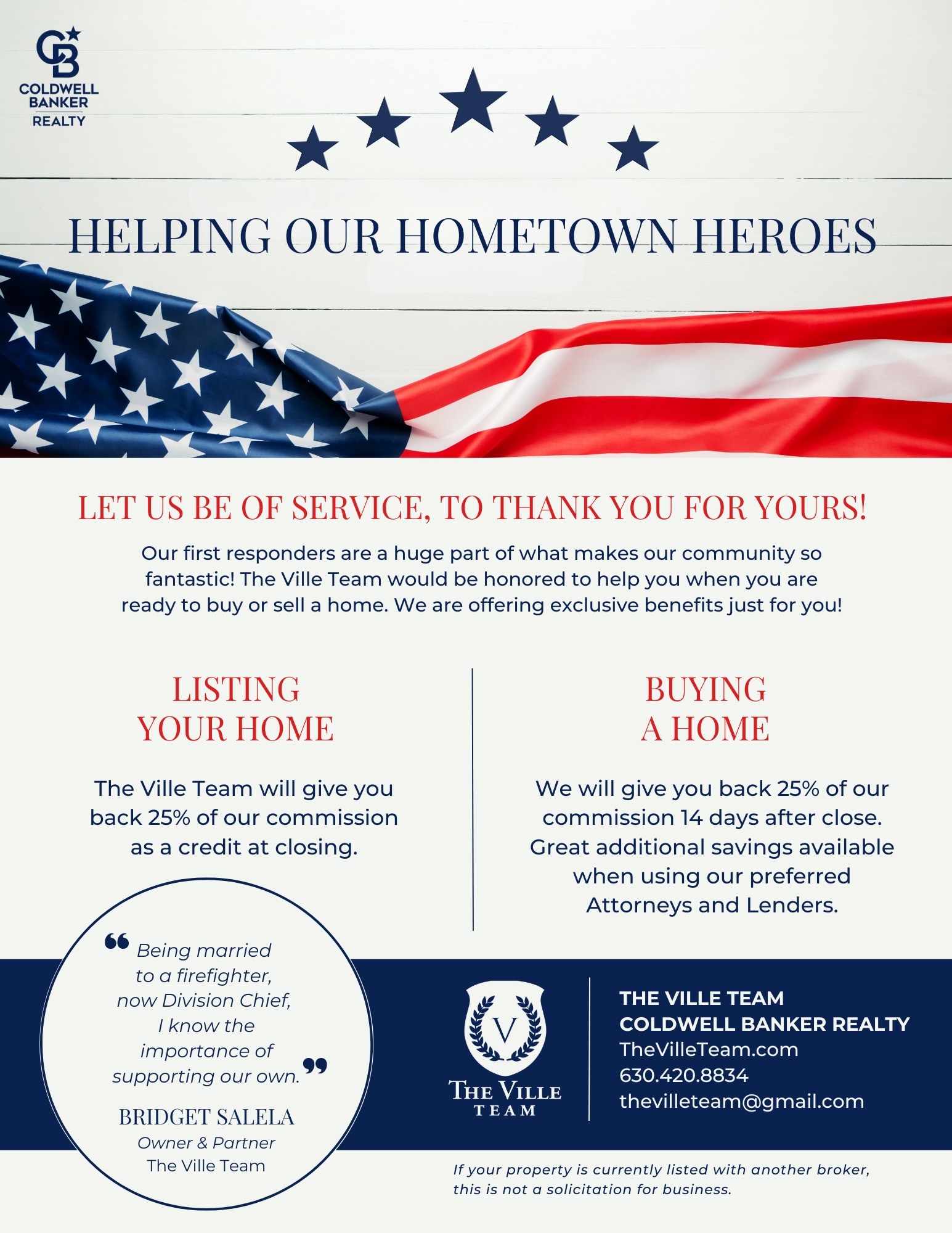 Our first responders are a huge part of what makes our community so fantastic! The Ville Team would be honored to help you when you are ready to buy or sell a home. We are offering exclusive benefits just for you! Great additional savings available when using our preferred Attorneys and Lenders!