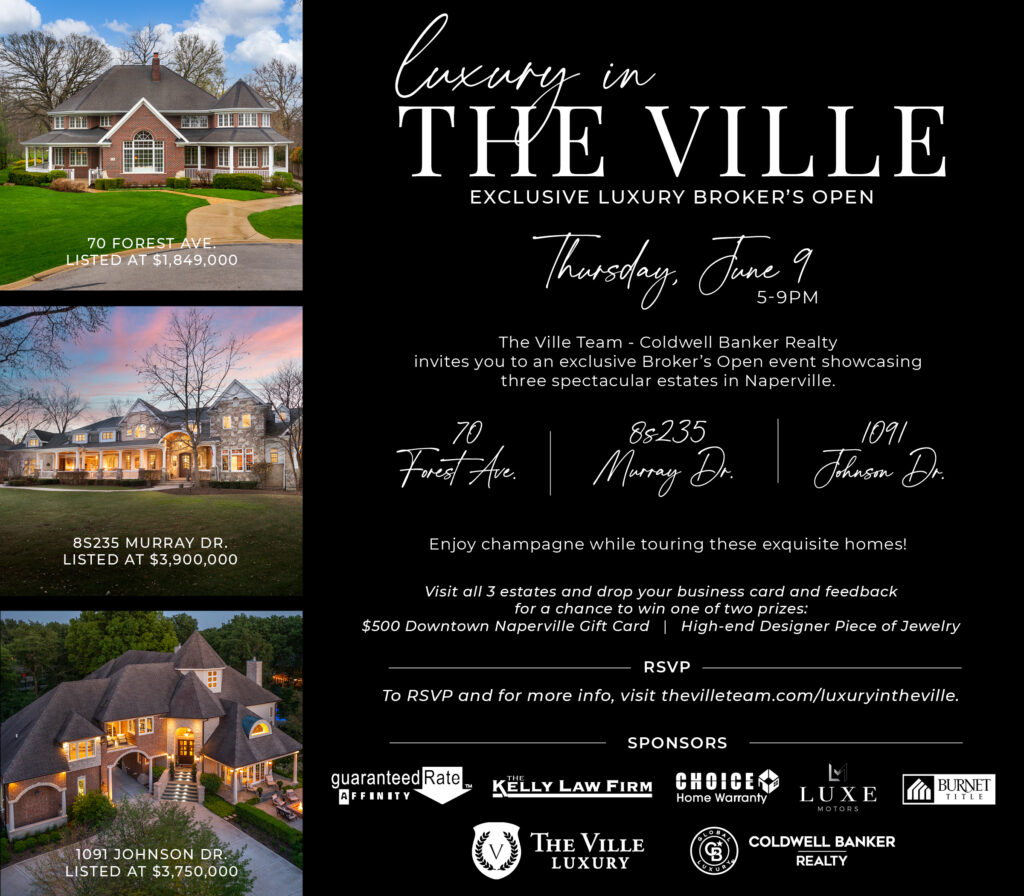 The Ville Team – Coldwell Banker Realty invites you to an exclusive Broker’s Open event showcasing three spectacular estates in Naperville.