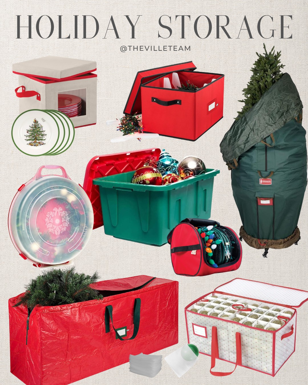 Holiday Plate Storage | Spode Christmas Dinner Plates | Holiday String Light Storage | Upright Tree Storage Bag with Rolling Tree Stand | Wreath Container | Heavy Duty Stackable Plastic Totes | Light Storage Spools and Bag | Waterproof Christmas Tree Bag | Protective Foam Wrap Pouches | Ornament Storage Box